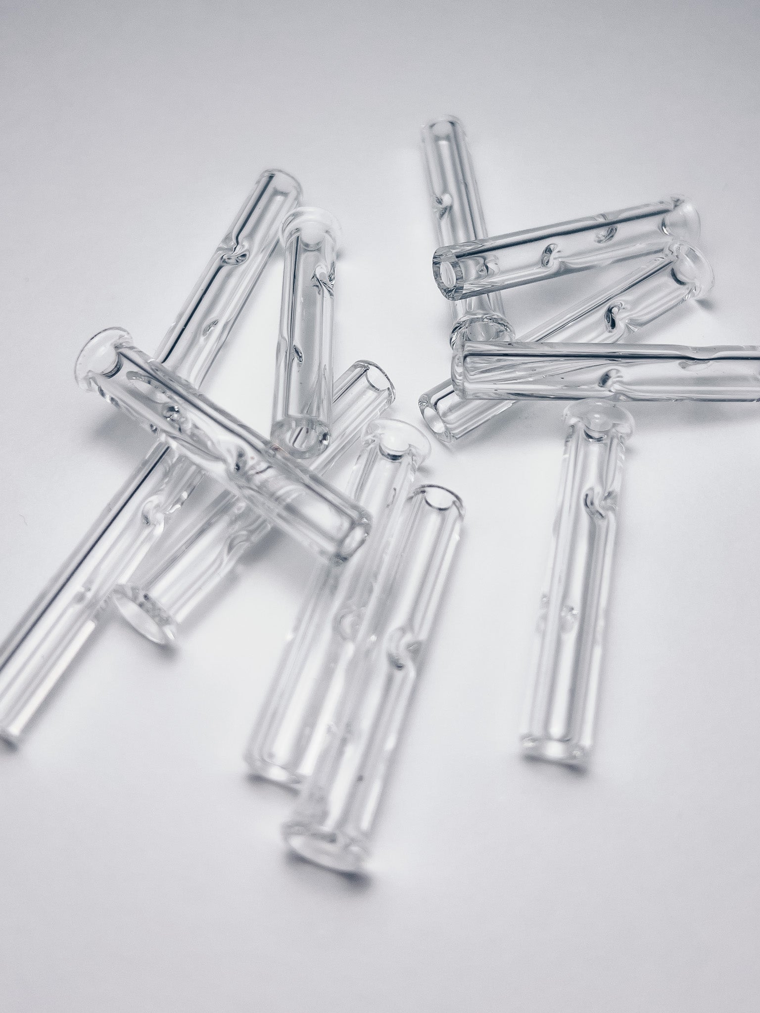 Többször használható, tisztítható üveg szipka sodort cigarettához.